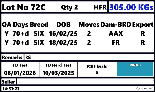 Friday 13 Mar, Ring 2, Calf Sale, Intake 10:00, Start 15:30