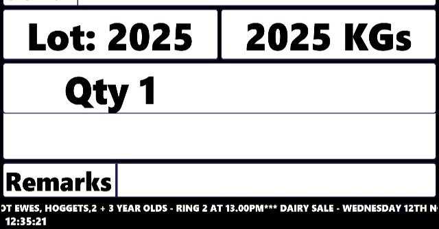 Thursday 13 Nov, Ring 1, Sheep Sale, Intake 7.30am to 9.15am, Start 09:30