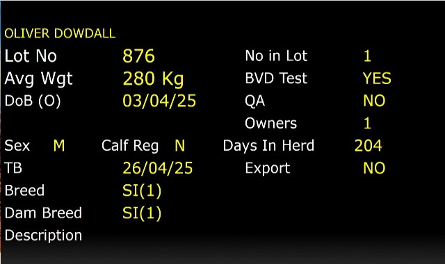 Thursday 30 Oct, Ring 2, CALF SALE, Start 10:30,